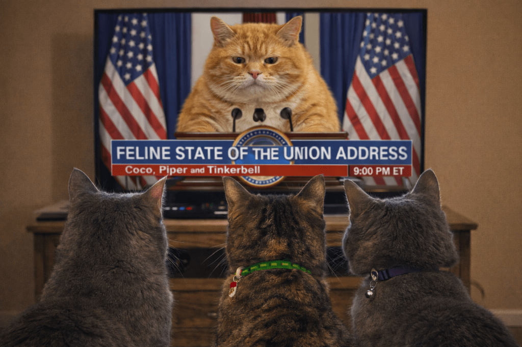 We are all in therapy and trying to work things out. Coco and Tink got some tutoring sessions in aggression and have progressed to a light hiss and a paw in the air and learning how to call a bluff. One night they alerted me to a possible intruder. It was a 2” moth holding a shank. And a pregnant gnat with an attitude. I told Coco, “get to it sister, this one is yours.”