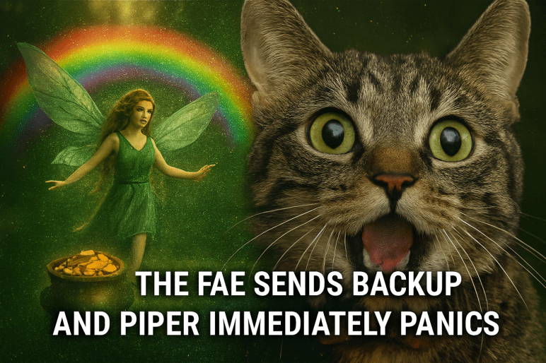 And honestly she doesn’t. With a final puff of glitter, the leprechauns vanished like they’d just escaped a toxic work environment. The house fell silent. The kind of quiet that says, We will not be discussing this again.”  Tinkerbell sighed the sigh of a woman who has raised too many children who don’t listen. Coco picked up her clipboard and documented the incident like she was preparing for a congressional hearing wrote, “Note: Do not antagonize magical beings.” Piper strutted around with the swagger of someone who absolutely caused an international incident and would do it again before lunch like she’d won a war. And me? I just stood there, wondering how I became the legal guardian of three furry war criminals.