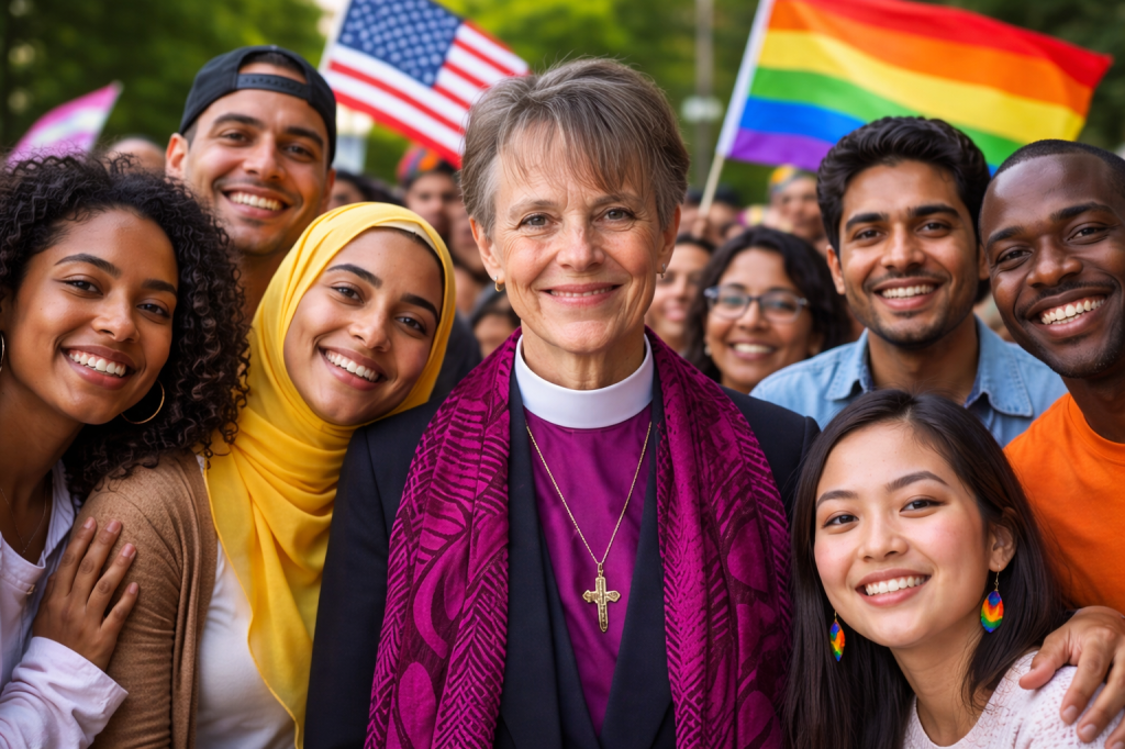 Light the charcoal. Let it sizzle like it’s overheard one too many “I’m not racist, but-” conversations at a Mississippi church potluck. Today, we’re talking about a real Christian. Not the “I love Jesus but hate all his friends” variety we keep tripping over like abandoned folding chairs after a revival. We’re talking about Episcopal Bishop Mariann Edgar Budde. A woman who doesn’t just quote Jesus. She actually acts like she’s met Him. And down here in the Deep South where some folks treat cruelty like it’s a spiritual gift and Trump like he’s the fourth member of the Trinity. That alone makes her a miracle.