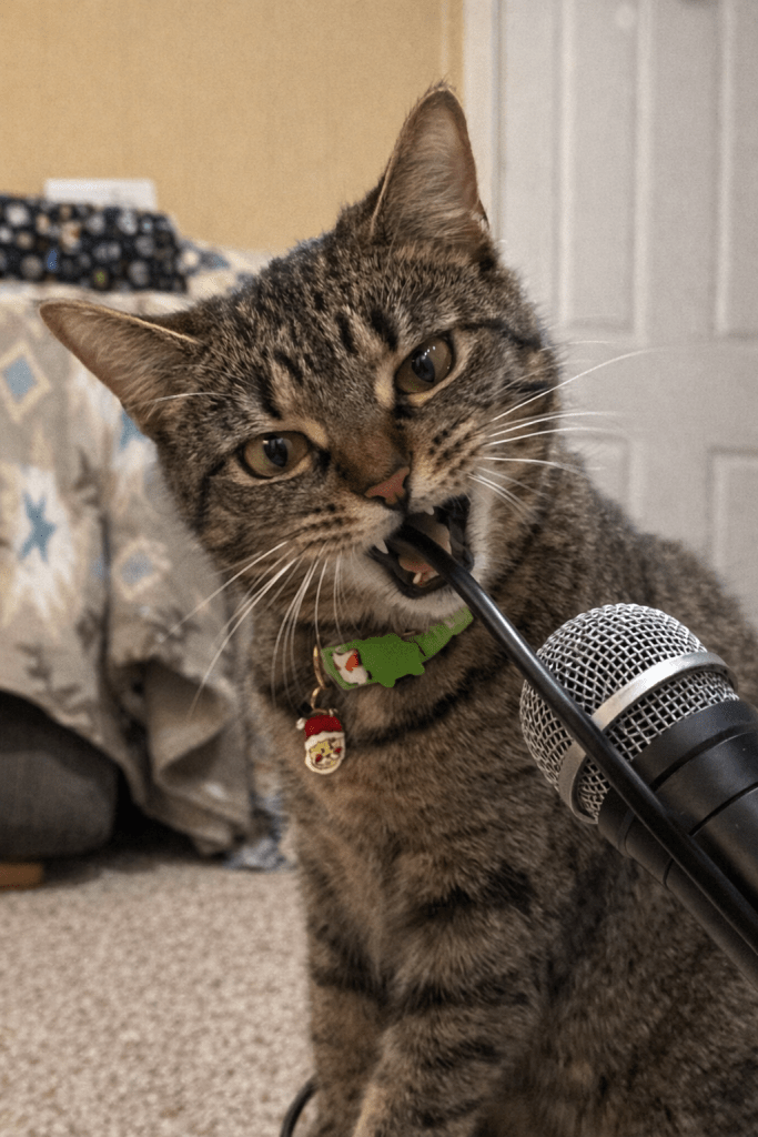 Piper is, in fact, chewing on the mic cord.