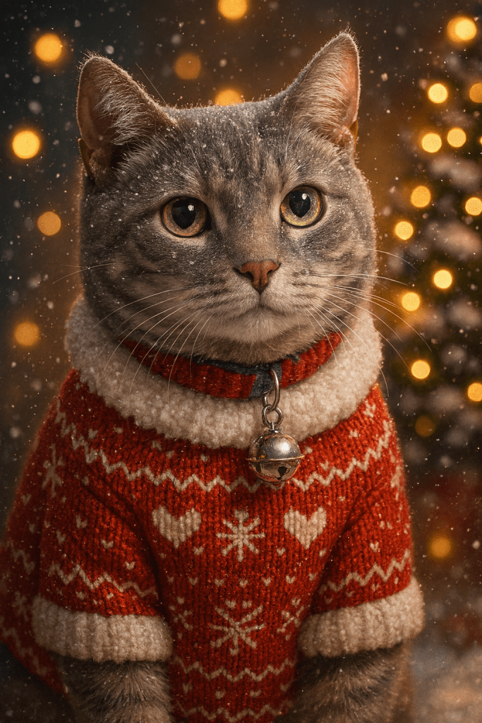 Me: “Well, Kitty Claus has a sleigh that’s magically powered by catnip. And then while all the cats are sleeping, he comes to where they are and leaves out gifts. And then he goes to the next area. And we leave out snacks with some tuna juice out to make sure he doesn’t get too hungry.”